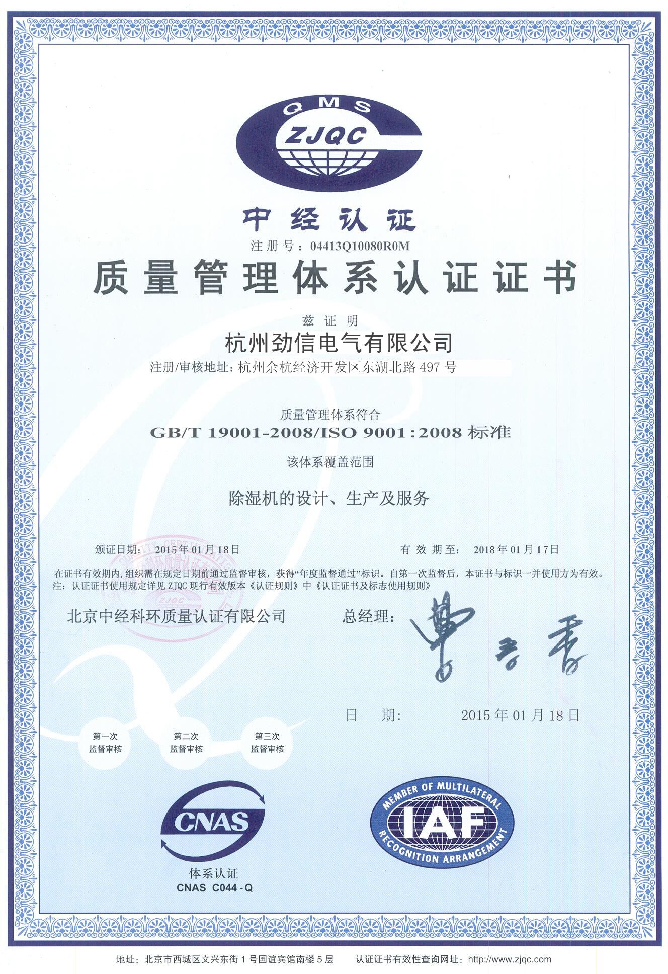 質(zhì)量管理體系證書