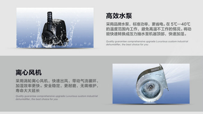 1. Microcomputer fully automatic control, real-time display of operating humidity, and can view the ambient temperature. < br / > 2. Humidity 5% RH adjustable, setting range 40% - 95% RH. It has the control function of timing off humidification and appointment opening humidification. < br / > 4. Perfect system fault automatic diagnosis function, better maintenance of the machine. The sole universal wheel is easy to move. < br / > 6. The system is equipped with a water level detection device, which has the functions of water shortage and full water alarm and shutdown, and overflow protection to realize safe water level operation. High, medium and low wind speeds are adjustable and can be freely selected according to needs. No compressor, no refrigerant, no pollution, efficient humidification, energy saving, environmental protection and low operating cost.