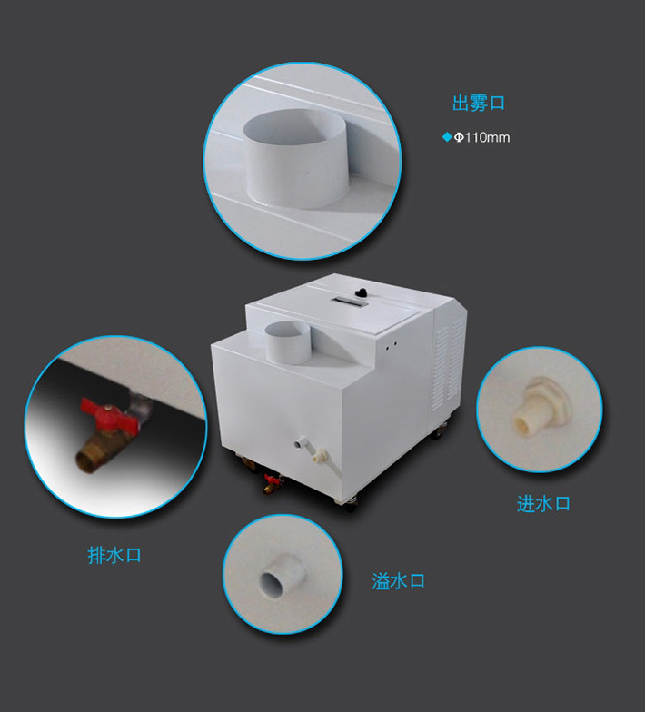 1) Integrated atomization module, replaceable chip, easy maintenance and field operation. < br / > 2) the humidification efficiency is high (close to 95%), the humidification intensity is large, and the fog particles produced are small and uniform, which can quickly reach the required relative humidity. < br / > 3) the integrated atomization mechanism is equipped with water overflow protection device, which can effectively ensure that the atomizing core can automatically stop working when the water level is too low, and there is no need for additional equipment to save cost. < br / > 4) the control mode is flexible and convenient, and the humidity is fully automatic controlled. < br / > 5) humidity digital full-automatic control, the control system is equipped with imported humidity sensor, with high control accuracy and rapid response. After setting, continuous work, no need for personnel duty. < br / > 6) stainless steel box is adopted, which has beautiful appearance, corrosion resistance and long service life. < br / > 7) the equipment is equipped with high-performance automatic water feeding solenoid valve, overflow port and drain port, which is easy to use, safe and reliable. < br / > 8) after repeated tests and years of practical testing, the structure is compact and reasonable. There is no noise when working, and the atomization effect of liquid is high.
